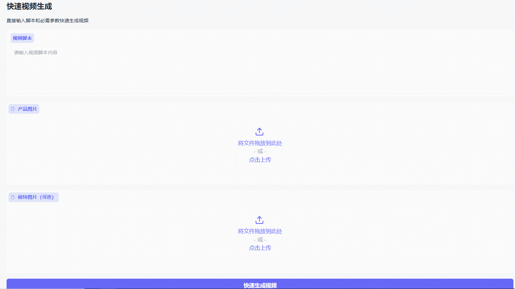 产品图片/视频:上传您产品的清晰图片或短视频片段,这能让最终视频更精准、高质量。