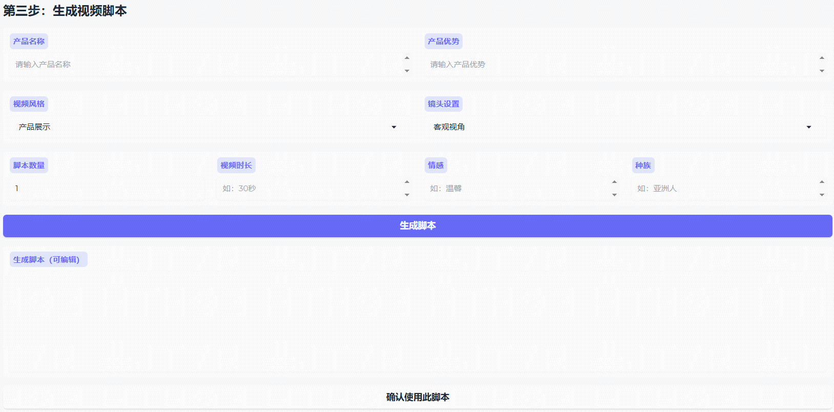 - 智能生成爆款脚本:结合TK平台最新热点,量身定制视频文案。